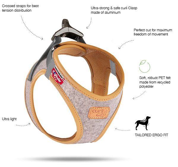 And again, as the harness specialists we put some extra icing on the cake here, as the felt used for the Alpine Vest Harness is not an animal-originated material, but a sustainable felt made from recycled polyester, which is in no way inferior to conventional felt in terms of quality and durability. A real must-have for all curli fans.