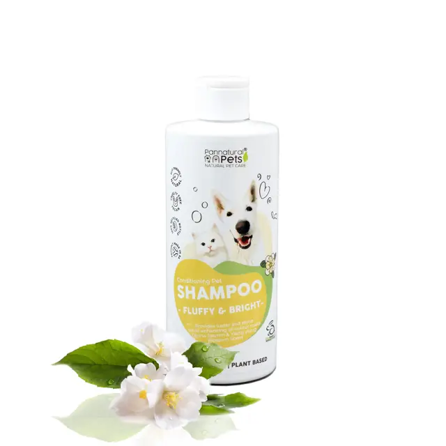 Wet the fur with warm water. Apply shampoo to the dog’s wet fur. Rub in briskly and praise vigorously! Leave the lather to stand for a few minutes to allow the natural ingredients to take effect. Rinse well and repeat if necessary. At the end clean the head with a sponge! For the best result use Pannatural Pets Eye and Ear Cleansers too. Don’t forget to reward with a treat!