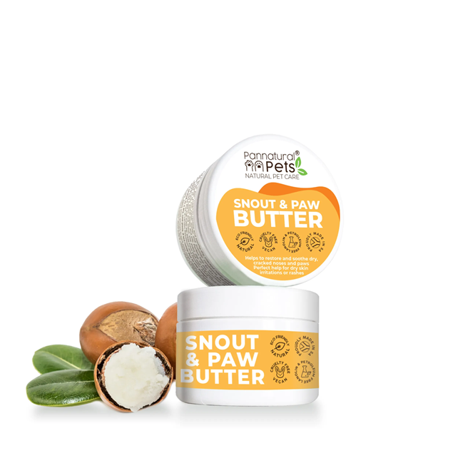 Snout and Paw Butter helps to restore and soothe dry, cracked noses and paws. It also helps to protect your pet from harsh winter and summer conditions. Moisturises and conditions with a blend of natural waxes and oils. Perfect help for dry skin irritations or rashes, cracked and crusty paws and snout. Use every day in the summer months to protect the nose and outer ear areas from UVA and UVB rays.
